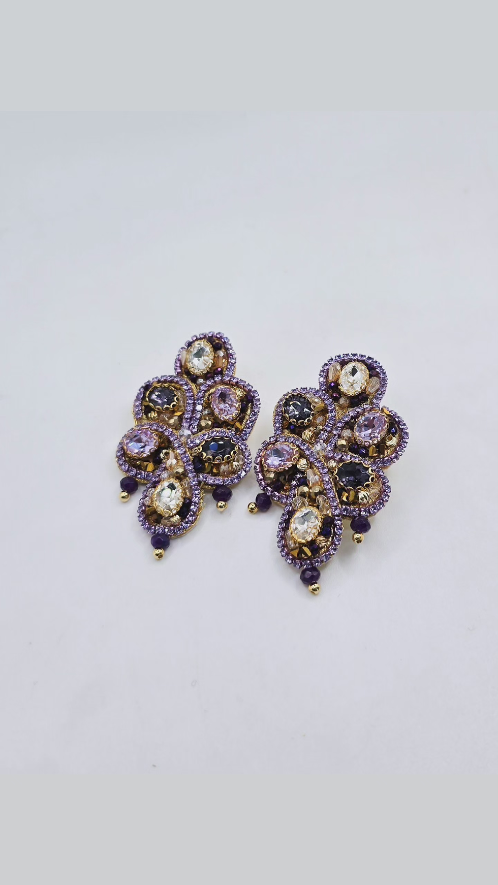 Bordado a mano , fibra dorada y cristales, baño de oro